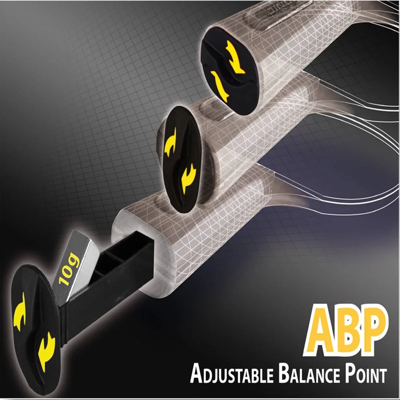 - فناوری ABP (Adjustable Balance Point): با این فناوری، مرکز تعادل راکت قابل تنظیم است. این قابلیت به بازیکن این امکان را میدهد که مرکز تعادل را به سمت سر راکت برای ضربات تهاجمیتر یا به سمت دسته برای دقت و کنترل بیشتر تغییر دهد.