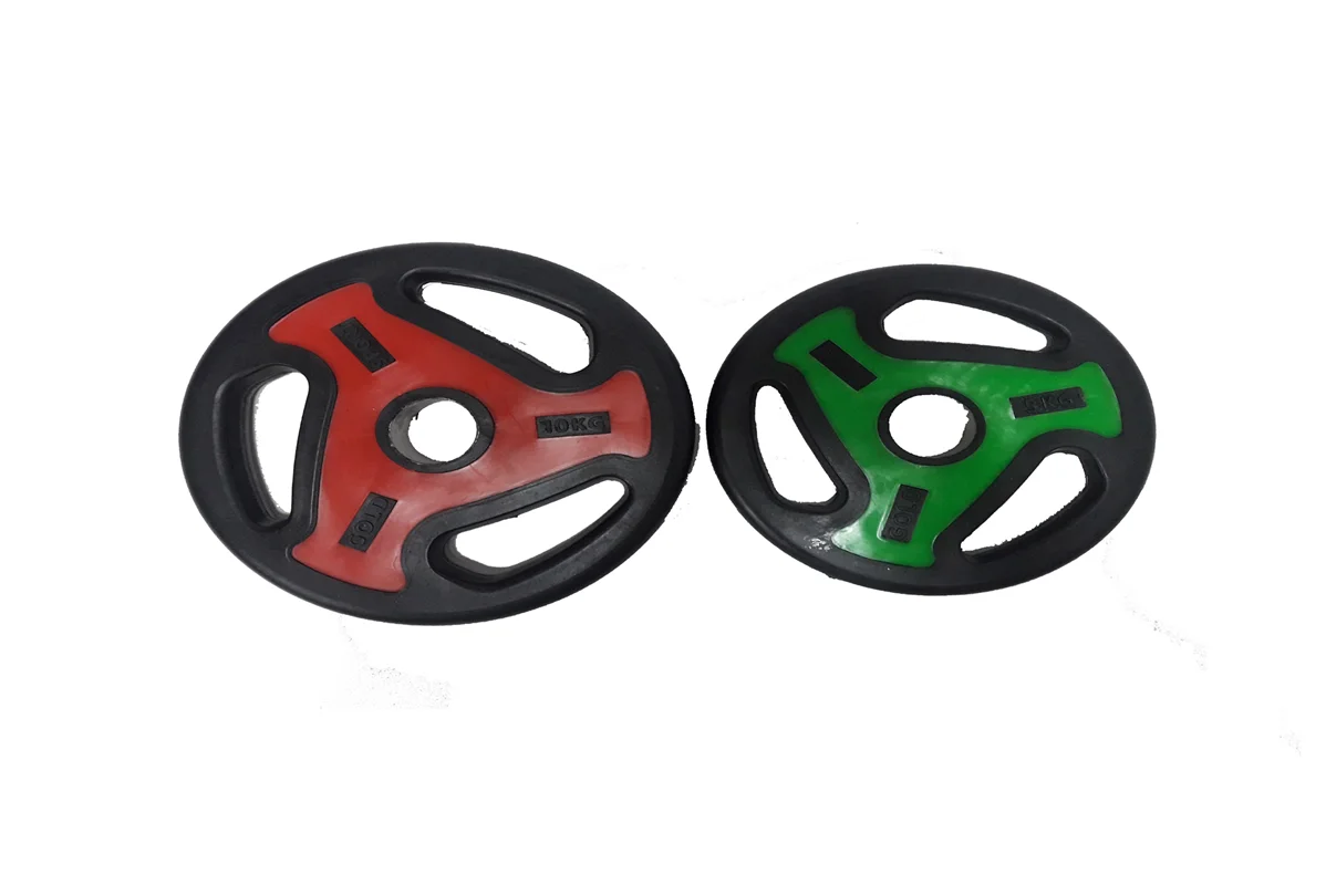 صفحه هالتر فرمانی رنگی معرفی شده در این بخش از جنس چدن و به صورت روکش تمام لاستیک است، که دارای 3 دستگیره جهت سهولت در جابجایی میباشد.صفحه هالتر فرمانی رنگی در قطر 50میل و به صورت تکی به فروش میرسد.صفحه هالتر فرمانی رنگی کیفیت بسیار خوبی دارد که در منزل و باشگاه میتوان ازآن استفاده نمود