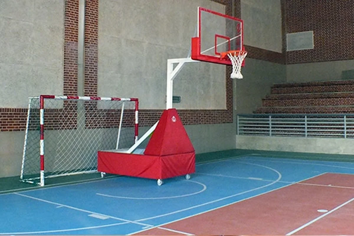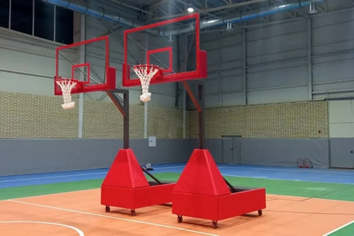 بسکتبال متحرک معرفی شده در این بخش دارای ضربه گیر (تشک ایمنی) زیر طلق و همچنین دارای ضربه گیر و تشک ایمنی در تمامی کناره ها و دیواره های سازه جهت حفظ سلامت بازیکنان است. حلقههای استفاده شده در تولید این محصول، از نوع ساچمه دار طرح شیلد آلمان است که مورد تایید مسابقات بوده و تا 120 کیلوگرم وزن را تحمل می نماید.